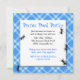 Quadratische Party Einladung des Spaßes erfolgt in einem blauen und weißen modernen karierten Muster mit einem weißen Mitteltextbereich. Grafiken der schwarzen Ameisen schauen, ganz über die Einladung zu kriechen. Aller Text ist kundengerecht und bereit, für Ihr Sommer-Party zu personifizieren.