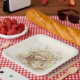 Picknickkorb mit Weinflasche und Blume in Aquarellwirkung.