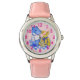 Kinderuhr aus Edelstahl mit rosa Lederarmband