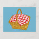 Ein stilisiertes Bild eines Picknickkorbs. Stellen Sie sich das köstliche Essen in diesem niedlichen Picknickkorb mit rot-weißem Schachbrettmuster vor.