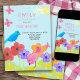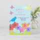 Niedliche Kinder picknicken Geburtstagseinladung zum Picknick im Park oder einfach zu anpassen, um Ihr Thema, wie Garten-Party oder Natur-Weg zu Anzug. Farbenprächtiges Sommergarten-Design mit doodle Art Blume, Vögeln und Schmetterlingen genießen den Garten an einem warmen sonnigen Tag.