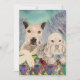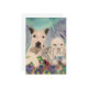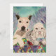 Aquarellhunde auf mehrfarbigem Steppchen mit Lavendelhintergrund