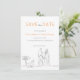 Diese Save the Date-Karte ist eine gelungene Mischung aus Moderne und lässig, mit einem minimalistischen Schwarz-Weiß-Design, das durch einen Pop Orange betont wird. Die Vorderseite der Karte bietet die Möglichkeit, ein besonderes Bild zu zeigen, und fügt der Ankündigung Ihrer Veranstaltung eine persönliche Touch hinzu. Im Hintergrund wird die lässige und informelle Formulierung durch einfache Typografie in Holzkohlefarbe ergänzt, die ein entspanntes und einladendes Gefühl schafft. Das Hinzufügen einer minimalen Kunstdarstellung mit einem Paar, das Hände mit einem goldenen Retriever an einem Schild hält, verleiht dem Gesamtbild eine Touch von Charme und Wärme. Mit dieser Save the Date Karte können Sie Ihre Gäste auf stilvolle und herzliche Weise über Ihren besonderen Tag informieren.