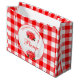 Machen Sie Ihre picknicken Party-Geschenke mit diesem glänzenden, roten Gingham karierten Karo Geschenktasche. Personalisieren Sie mit einem Familiennamen und Picknick oder anderen Worten, um Ihren Anlass Anzug.