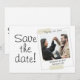 Diese trendige Ankündigung Datum freihalten-Karte im Stil eines Fotos besticht durch das Foto des Ehepaares, das von einem weißen Rahmen umgeben ist. Ein Maskierungsband sitzt oben und unter dem Foto. Auf der Karte wird ein Schriftart im Schreibstil verwendet. Der Schriftart ist schwarz.