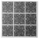 Dieses Design entstand durch das Duplizieren und umdrehte eines spiegelnden Musters geometrischer Formen (vor allem Dreiecke) in verschiedenen Grautönen und Schwarz angepasst, die einem Mosaik oder einem Werk aus Fleckglas über diesem Originalbild ähneln. Die Bilder wurden dann in Form eines Gitters dargestellt, ohne dass eine andere Grenze als die im Design vorbestehende besteht.