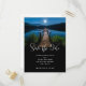 Save the Date Postkarte mit schönem Foto eines Holzsteaks, der sich über einen ruhigen See erstreckt. Nachthimmel bedeckt mit Sternen und einem schönen Vollmond.