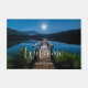 Eine willkommene Tür mit einem schönen Foto eines Holzsteaks, das sich über einen ruhigen See erstreckt. Nachthimmel bedeckt mit Sternen und einem schönen Vollmond.