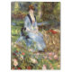 Pierre-Auguste Renoir - Dans les Rose. Niedliches Portrait einer jungen Frau in warmen Farben. Ein Mädchen sitzt auf einer Bank in einem schattigen Wahnsinn. Blume wachsen in der Nähe. Hinter ihr stehen hohe Bäume. Reproduktion berühmter Kunstbilder im öffentlichen Bereich.