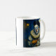Melancholie Pierrot Clown-Illustration in mondbeleuchteter Straßenszene auf der Tasse der Keramik, ideal für Sammler, Kunstliebhaber und Zirkusfans. Treten Sie ein in die Welt der Vintagen Zirkuskunst mit dieser ausdrucksvollen Keramik-Tasse mit einem Pierrot-inspirierten Clown. In einem klassischen weißen Kostüm mit übergroßen Kruffeln und Akzenten auf roten Knopfpunkten beleuchtet der beklagenswerte Ausdruck des Clowns das sanfte Glühen eines Vollmonds und Lampenlichtes. Die stimmungsvolle Nachtkulisse verstärkt die emotionale Tiefe des Kunstwerks und verbindet Nostalgie mit dramatischer Eleganz. Diese Tasse ist perfekt für Sammler, Karnevalsfreunde oder alle, die einen einzigartigen, geschichtsträchtigen Trinkbehälter Liebe haben, und verwandelt jeden Schluck in einen Augenblick der kunstvollen Reflexion.