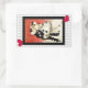 Die Beliebtheit des Pantomime in den späten 1980er Jahren führte zu einem Wiederaufleben des traurigen Clowns Pierrot. Hier ist ein rechteckiger Aufkleber, der zu unserer "Pierrot’s Masquerade"-Einladung passt, mit einem Bild eines grauen und weißen Schachbrettes und einem Vintage-Bild eines maskierten Pierrot und seiner Liebe Columbine auf einem abstrakten, roten und weißen Hintergrund mit einem schwarzen Rand. Siehe dazu Einladung, Umschlag, Geschenkmarke, Etikett und Packpapier. Sehen Sie sich die gesamte Auflistung der Aufkleber für den 80er in den EINFORDERUNGEN an. | Aufkleber und Etiketten.