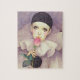 8" x 10" Puzzle mit einem Vintagen Bild der 80er Jahre des traurigen Clowns Pierrot mit einer Träne in ihrem Auge und einer lang gesteppten Rose in ihrer Hand. Pierrot ist eine Figur, die sich mit Romantik, Dekadent, Symbolik und frühem modernistischen Theater und Kunst entwickelt hat. Sehen Sie sich die ganze Sammlung des Tubular 80er Puzzles in AKTIVITÄTEN an | Abschnitt "Rätsel".