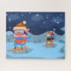 Eine niedliche Wasserszene eines Schweins und Fuchses, der ein wenig Nachts Ski fährt.