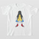 Bold, quirky pigeon design with grey body, bright yellow hands, blue cuffs and red high-top sneakers. Whimsical streetwear illustration with strong contrast and urban vibe.