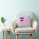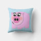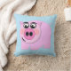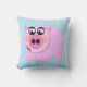 Kissen, das rosa Schwein auf transparentem Hintergrund kennzeichnet. Wählen Sie Hintergrundfarbe für Tausenden der verschiedenen Blicke. Die Farbe, die gezeigt wird, ist hellblau.