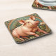 PIGLET. Beautiful farmhouse coaster featuring a piglet on floral background. Vintage Art Nouveau Inspired look. Generative Art design.