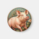 PIGLET. Beautiful farmhouse magnet featuring a piglet on floral background. Vintage Art Nouveau Inspired look. Generative Art design.