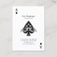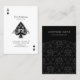 Kundengerechte Visitenkarteschablone als die Spielkarte mit dem höchsten Rang in der Plattform - der Pikass. Schwarzweiss-Entwurf mit Vintager Artillustration und elegantes Damastmuster auf der Rückseite. Personifizieren Sie sie mit Ihrem eigenen Info, oder Klicken "fertigt es" besonders an wenn Sie den Entwurf, die Farben oder das in Scheckkartengröße ändern müssen.