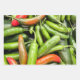 mit einem Foto aus einem Haufen grüner, würziger Paprikaschoten auf Packpapierblättern