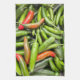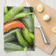 Pile von grünen scharfen Paprikaschoten Geschirrtuch