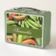 Pile von grünen scharfen Paprikaschoten Metall Brotdose