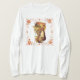 Erntedank T - Shirt mit einem Vintagen Erntedank Bild eines Pilgermädchens mit Kornukokie und Rand von Herbstblättern herum.