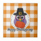 Pilgeruhu auf einem karierten Büffel mit orangefarbenem Muster mit der Beschriftung "Happy Thanksgiving".