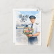Pilot steht mit Blumen auf der Start-und-Landebahn Postkarte