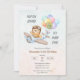 Make your little one’s celebration take off with this adorable Pilot Teddy Bear Birthday Invitation! Featuring a charming teddy bear soaring through the sky with a bunch of colourful balloons and a special present in tow, this design sets the perfect tone for a fun-filled adventure. With the playful phrase “Hop on board. It’s party time”, your guests will be excited from the moment they receive it! This invitation can be easily customised with all the details—birthday boy/girl's name, age, date, time, location, and RSVP.