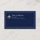 Elegante berufliche marineblaue Visitenkarte mit Basisinformationen.. Ihr Name ("unica one" Schriftart Stil) mit individuellem Beruf (Pilot) und dem Bild eines kleinen Imitats Gold Flugzeug... und Anschrift und Berufsinformationen hinten...