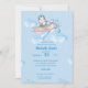Niedliche Wasserfarbe Blue Pinguin Pilot Einladung mit einem strukturierten Hintergrund, blaue Wolken. Der Hintergrund ist blau mit weißen Patches. Mama zu sein wird Liebe dieser fröhlichen Jungs Baby-Dusche Einladung.