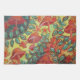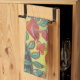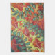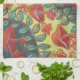 Die orangefarbenen Pilze, die grünen Blätter und der gelbe Hintergrund bilden ein Retro-Look Küchentuch. Spaß und interessante Wohngestaltung