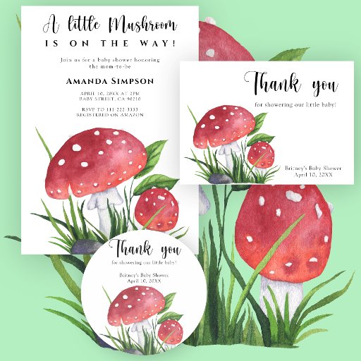"Ein kleines Pilz ist unterwegs!" Feiern Sie mit dieser Aquarellfliege agarisch! Fungi! Wasserfarbenpilz fliegt agarisch! Baby Dusche Party!