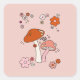 Pilze und Blume Peach Art Retro 70er Quadratischer Aufkleber
