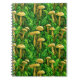 Notebook in einem Muster von wilden Pilzen und grünen Farnen, das im Wald wächst