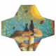 Niedliches Bild von zwei Katzen, die auf einem riesigen Pilz sitzen, in einem Wald voller Pilze, die die Herbstblätter beobachten, fallen gegen die Sonne und den blauen Himmel, um ein wunderbares Geschichtenbild zu schaffen. .