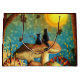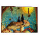 Niedliches Bild von zwei Katzen, die auf einem riesigen Pilz sitzen, in einem Wald voller Pilze, die die Herbstblätter beobachten, fallen gegen die Sonne und den blauen Himmel, um ein wunderbares Geschichtenbild zu schaffen. .