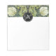 Eine Mit Monogramm Note Pad mit dem Blumenmuster von William Morris (1834-1896), Pimpernel (1876). Weiße Pappkuchen mit grünen Blätter und gelben Pimnell-Blume. Er ist ein britischer Künstler, der am besten für seinen Einfluss auf die Kunst- und Handwerksbewegung und seine Tapeten-Gestaltung bekannt ist.