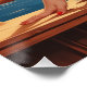 Mit diesem spannenden Vintage-Plakat, das für die Anhänger der Retro- und der skandinavischen Landschaften ideal ist, ist der nordische Reiz gekommen. Eine blonde Pin-up-Puppe mit sorgfältig gekleideten gewellten Haaren im Stil der 50er Jahre verkörpert zeitlose Eleganz auf einem Holzbalkon. Sie trägt zwei Satinierte-Teal-Stücke, bestehend aus einem oberen bis feinen Träger und einem oberen Rock, der ihre Graziumsilhouette aufzeigt. Hinter ihr steht eine atemberaubende norwegische Landschaft: Ein friedlicher See, der im Herzen der Fjords liegt, spiegelt das goldene Sonnenlicht wider, während sich Berge mit schneebedeckten Gipfeln stolz unter einem strahlenden blauen Himmel mit dunklen Wolken erheben. Die Szene wird durch heikle Tasten bereichert - eine Tasse Kaffee auf der Balustrade, Vasen mit glänzenden orangenen Blüten und sanft über Wasser gleitende Segelboote, die auf die Ruhe der norwegischen Fjords hindeuten. Vögel fliegen über den Horizont und fügen dieser nostalgischen Zusammensetzung eine Freiheitsnote hinzu. Dieses Werk verbindet das Glamour von einer klassischen Pin-up-Art mit der wilden Schönheit Norwegens, die perfekt ist, um Ihrem Hintergrund eine Prise nordischer Eleganz zu geben.