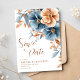 Mit diesem stilvollen Dusty Blue und Terracotta Garden Elegant Wedding Save the Date Set für Ihren Hochzeitstag. Diese moderne und schicke Ankündigung passt zu Ihrem einzigartigen Thema und verbindet sanfte Duschblau und warme Terracotta-Farben für ein perfektes Gleichgewicht von Eleganz und rustikalem Charme. Sorgen Sie dafür, dass Sie das Recht abschicken, speichern Sie die Daten? Dieses Design sorgt dafür, dass Ihr Hochzeitsstil sich wunderbar widerspiegelt, indem es die Bühne für den großen Tag schafft und Ihren Gästen einen angenehmen flüchtige Blick der bevorstehenden Feier gibt. Lass nicht die Angst vor dem vermisst-out auf Stil stoppen Sie - passen Sie jetzt Ihren Save the Date und stellen sicher, dass Ihr Hochzeitsvibe beginnt auf der perfekten Note.