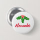 Weihnachts-Feiertag Pinback Knöpfe mit individuelle Name. Niedlicher einfacher Button-Button für Weihnachts-Party auf Zuhause oder im Büro. Festliche, heilige Blätter und Beeren mit elegantem Schriftzeichen-Schriftzeichen-Template für Namen. Erstellen Sie Ihre eigenen personalisierten Namen Abzeichen Buttons für Zuhause, Event, Corporate Office Party etc. Praktisch für Freunde, Familie, Gäste, Mitarbeiter, Mitarbeiter, Kollegen etc. Erhältlich in Klein-, Standard- und Großformat.