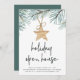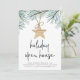 Freuen Sie sich auf eine Mischung aus Urlaub und Erholung in dieser Saison mit unseren modernen und festlichen Open House Einladungen. Das Design umfasst Aquarellkiefernbäume mit einem Holzsternschmuck und das "Ferienhaus im Freien" in modernen handgeschriebenen Schriften. Passen Sie Ihre Feiertagsdetails an.
