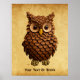 Eine niedliche Eule aus Kiefernkegel-Waage. Passen Sie Ihren eigenen Text an.