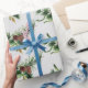 Das festliche und winterliche Verpackungspapier für die Ferien zeichnet sich durch ein Aquarellmuster immergrüner Äste mit Pinecones auf hellgrauem Hintergrund aus.