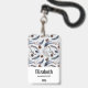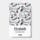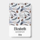 Abzeichen mit personalisiertem Namen mit einem schönen Muster. Kiefernzapfen, Federn, Kiefernnadeln und Beerensprigs. Rustikales Aquarelldesign.