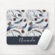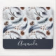 Ein Mauspad mit einem schönen Muster. Kiefernzapfen, Federn, Kiefernnadeln und Beerensprigs. Rustikales Aquarelldesign.
