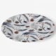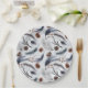 Papier Teller mit einem schönen Muster. Kiefernzapfen, Federn, Kiefernnadeln und Beerensprigs. Rustikales Aquarelldesign.