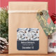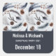 Weihnachts-Party Save the Date Aufkleber mit einem schönen Muster. Kiefernzapfen, Federn, Kiefernnadeln und Beerensprigs. Rustikales Aquarelldesign.