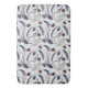 Eine Badematte mit einem schönen Muster. Kiefernzapfen, Federn, Kiefernnadeln und Beerensprigs. Rustikales Aquarelldesign.
