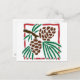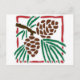 Es ist die Zeit des Jahres, und die Kegel sind offen und werfen Samen überall hin. Kiefernzapfen und Nadeln, in einem roten Karton, die Vorderseite eines Shirts oder einer Karte bedecken. Happy Holdiays.